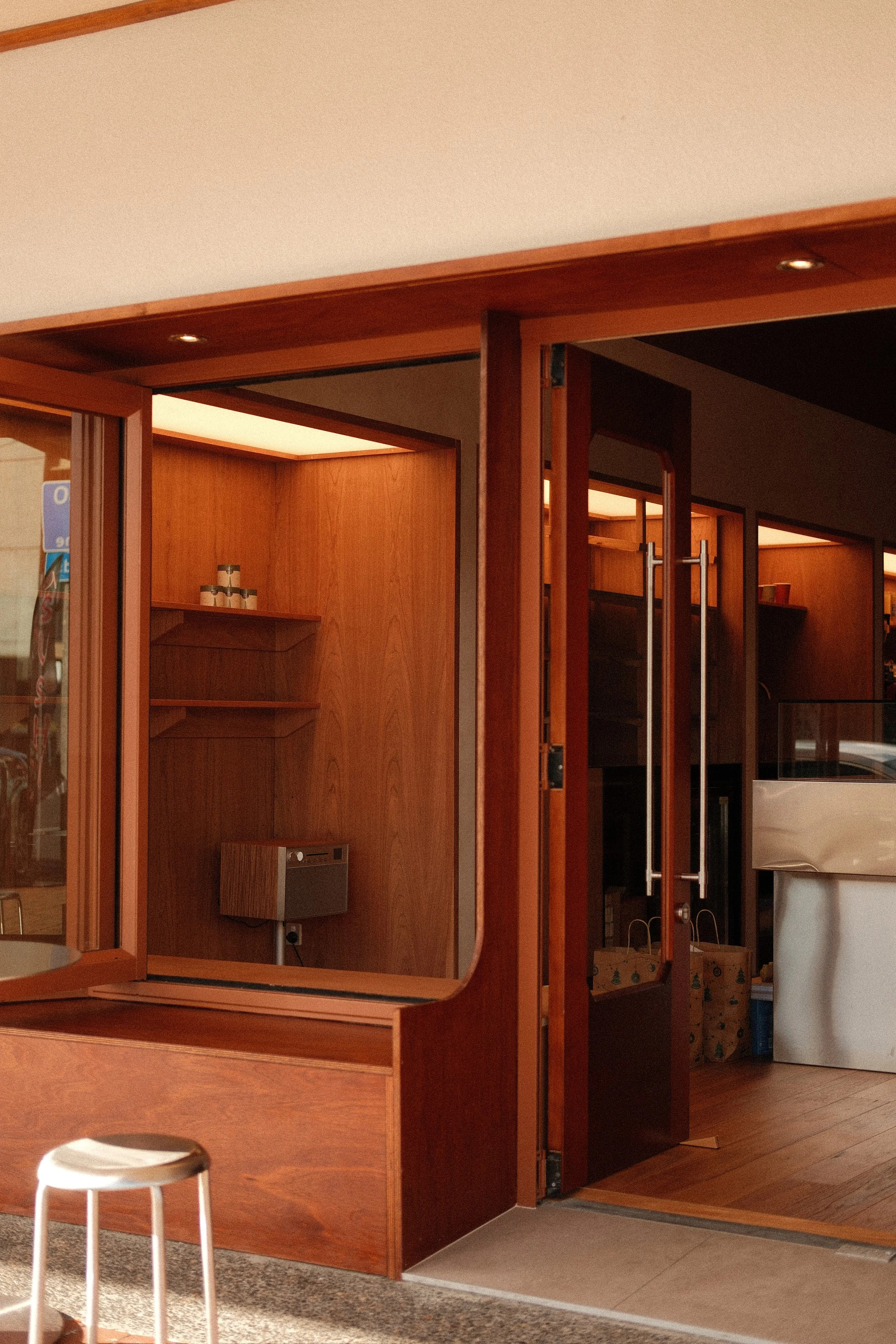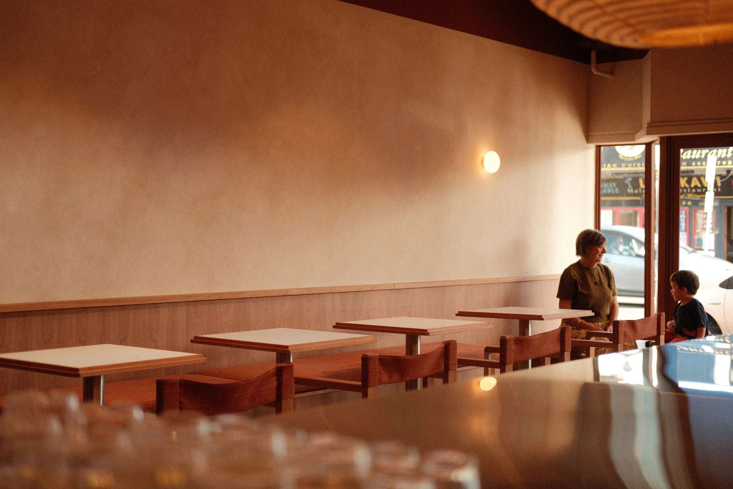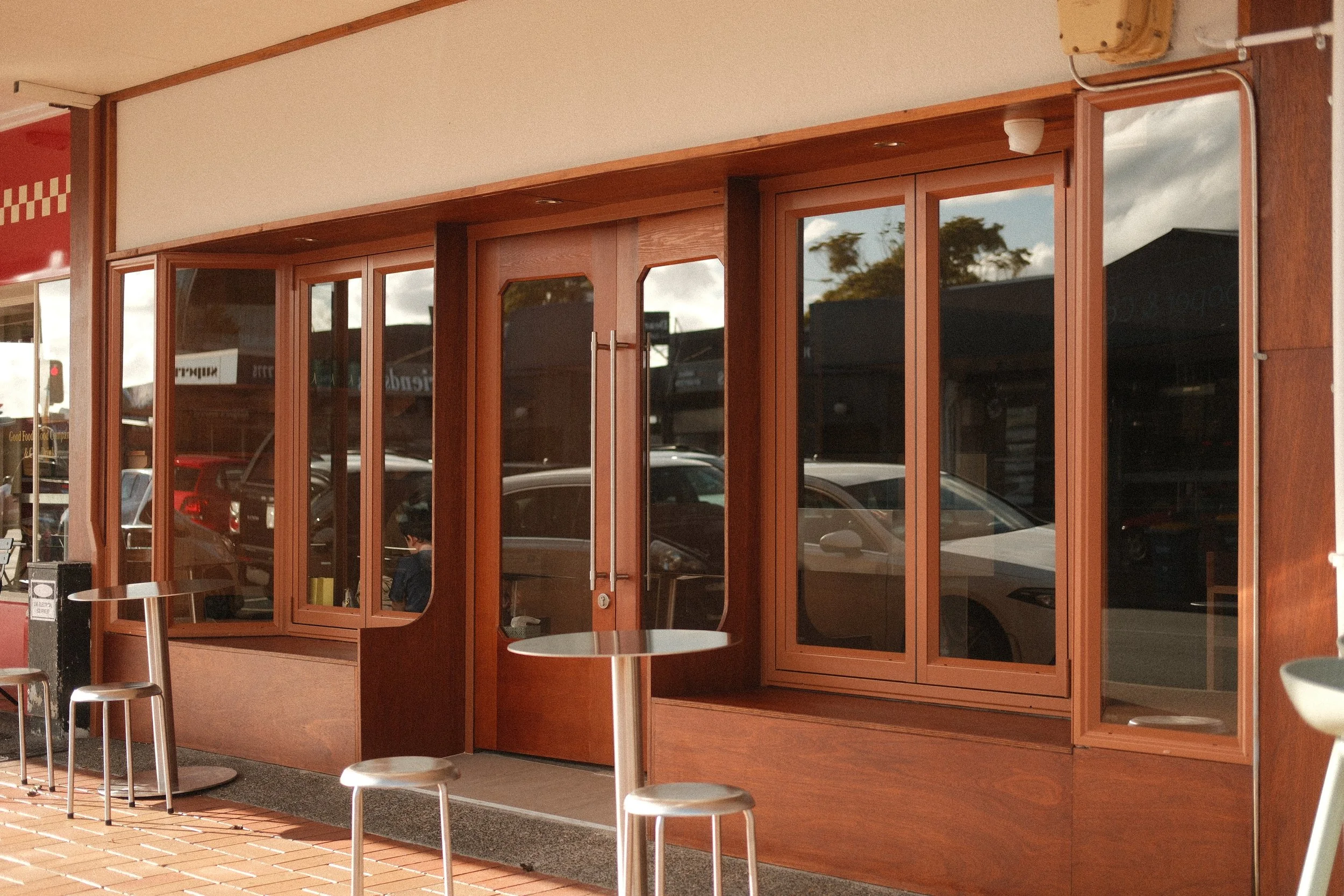 We reconstructed the shop front, building in bench seating to both sides to blur the line between indoors and out.