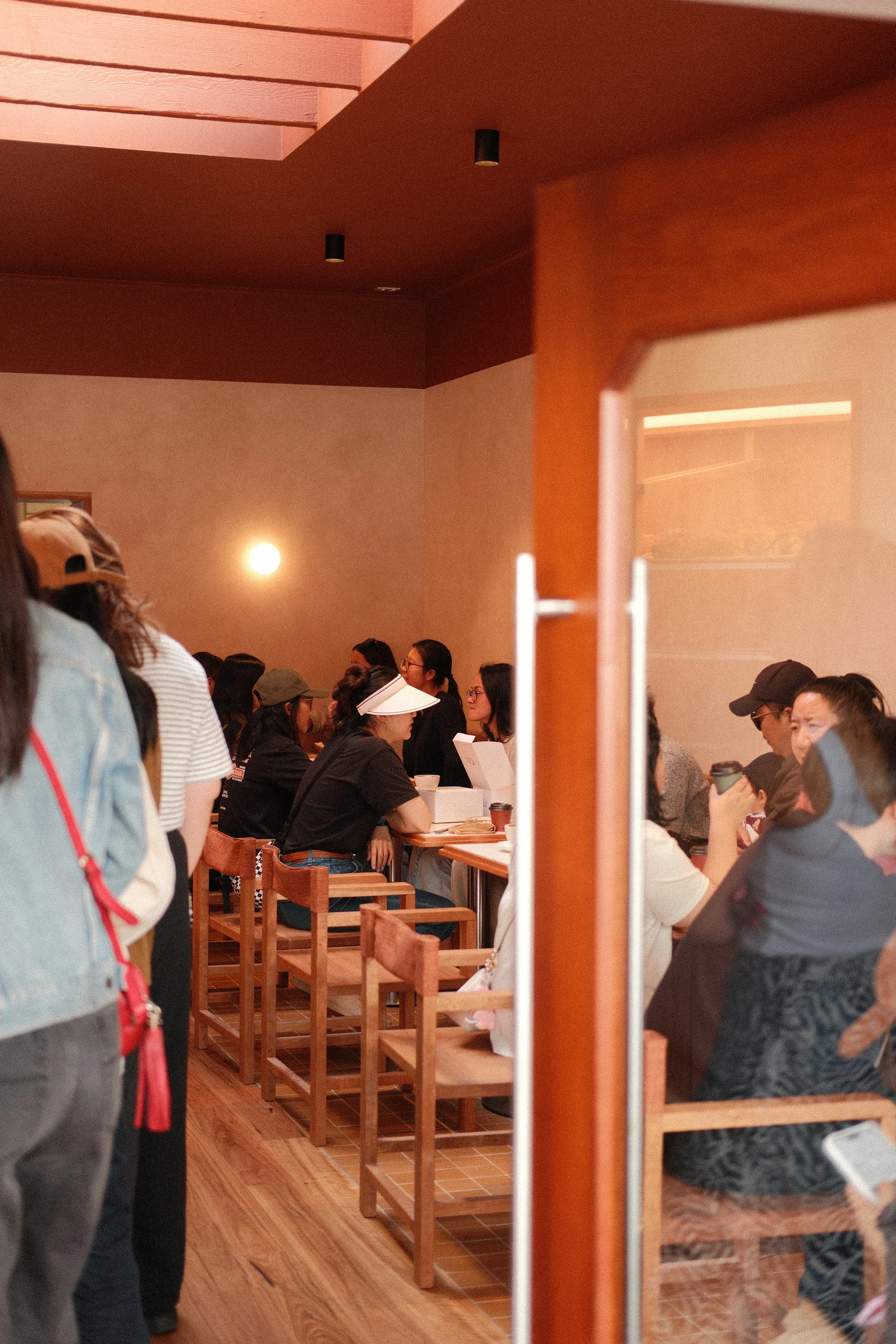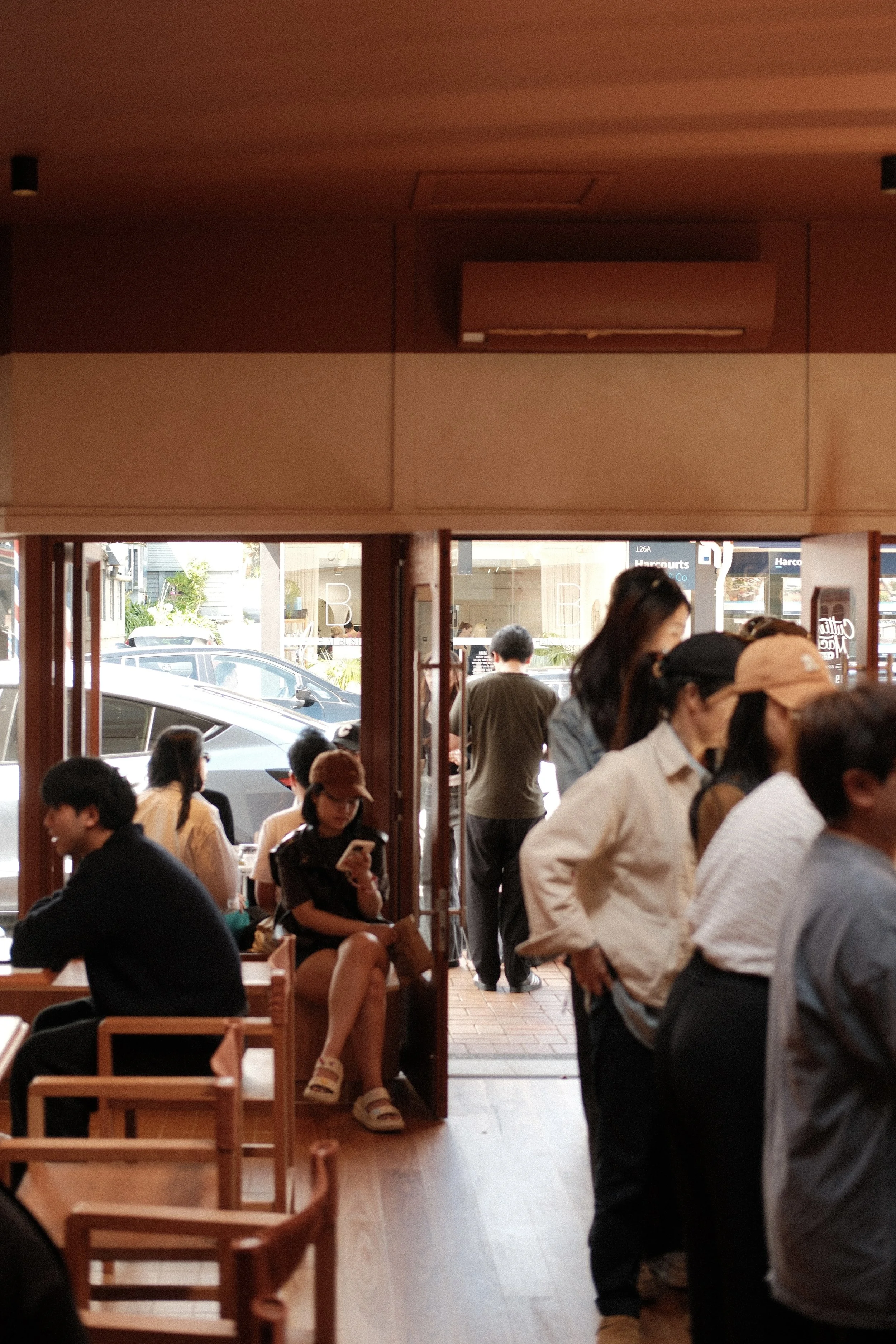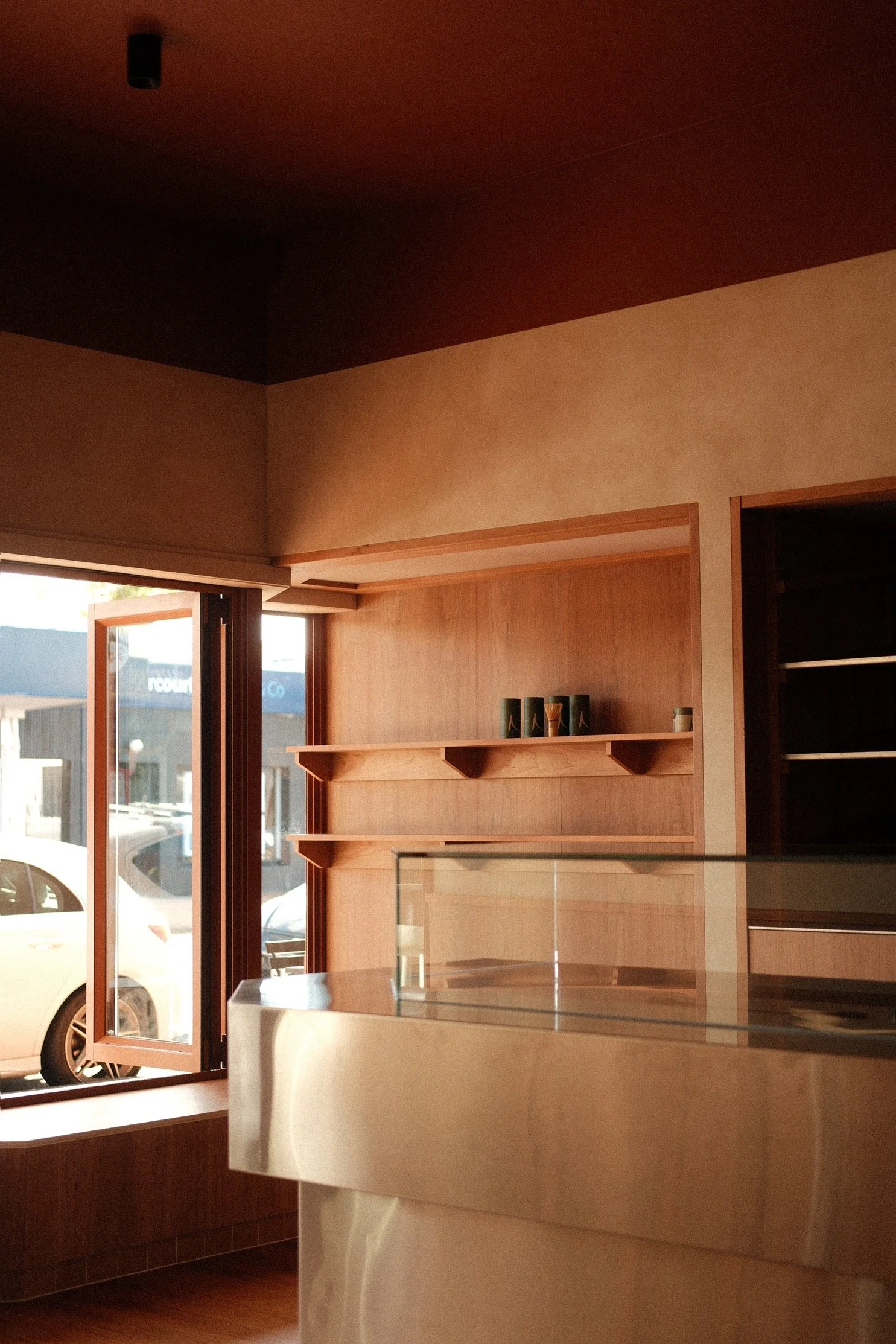 We reconstructed the shop front, building in bench seating to both sides to blur the line between indoors and out.
